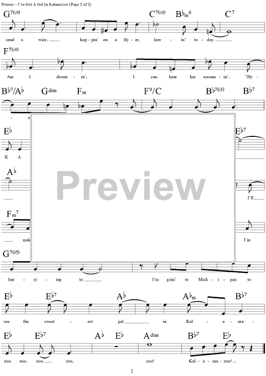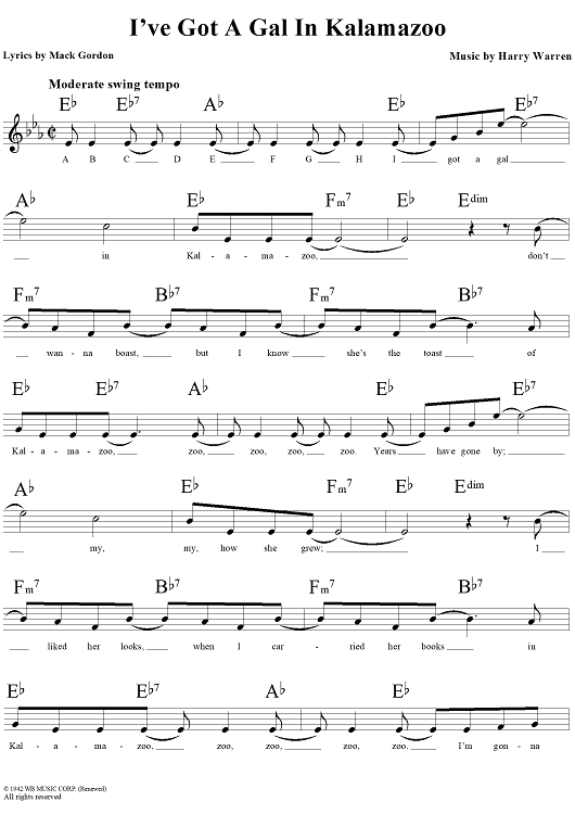 Digital Sheet Music for I've Got A Gal In Kalamazoo by Harry Warren, Glenn Miller, Mack Gordon scored for Lead Sheet; id:109965
