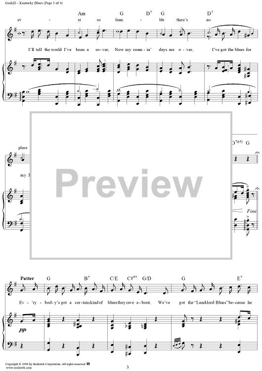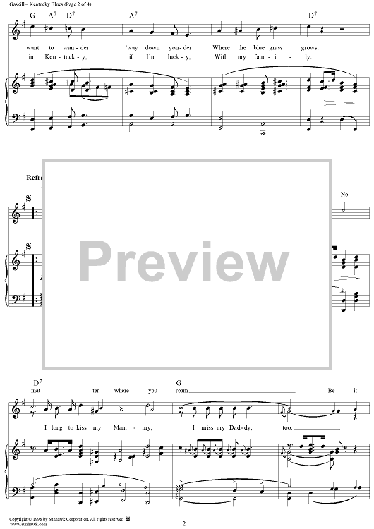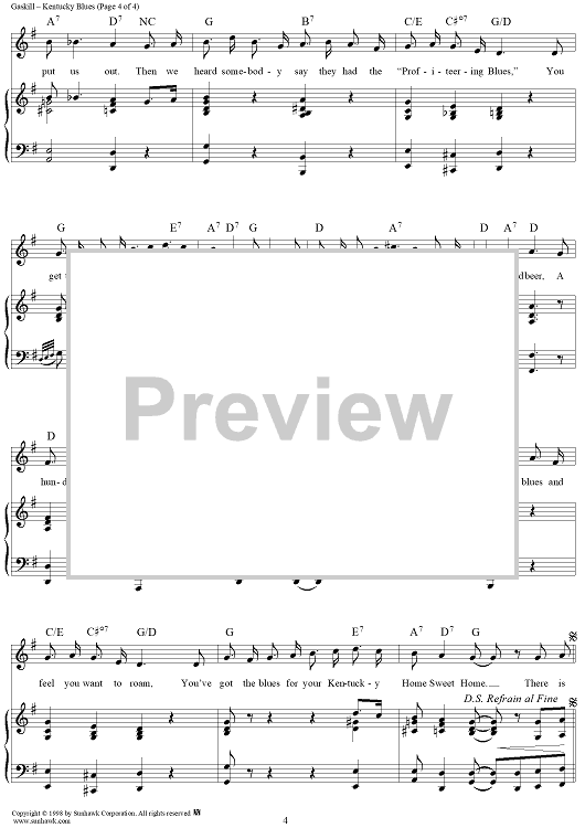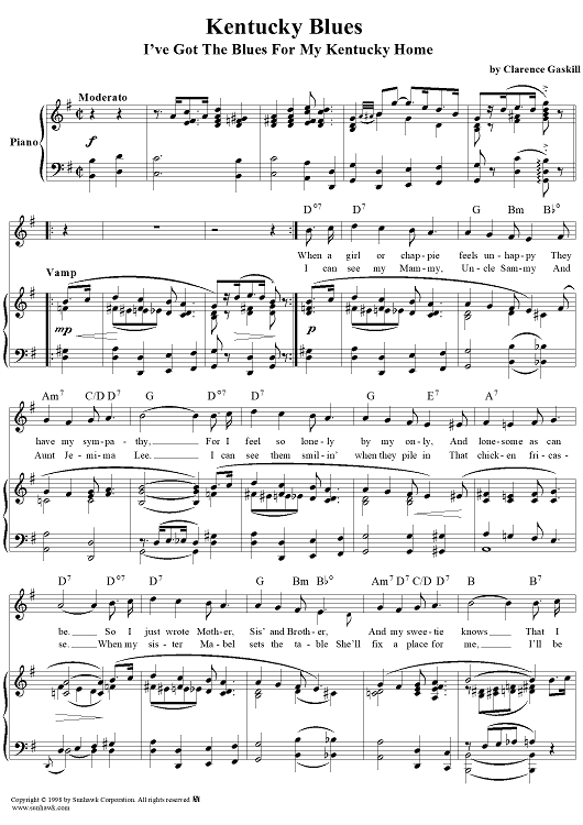 Digital Sheet Music for Kentucky Blues by Clarence Gaskill scored for Piano/Vocal/Chords; id:110911