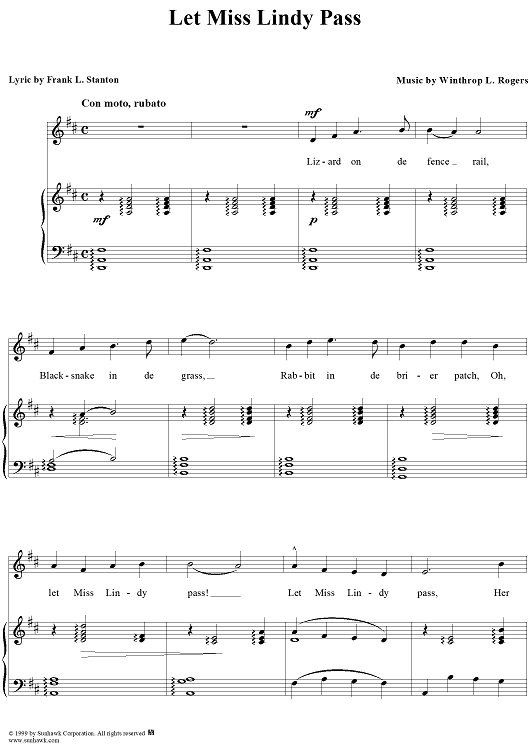 Digital Sheet Music for Let Miss Lindy Pass by Winthrop L. Rogers, Frank Stanton scored for Piano/Vocal; id:118417