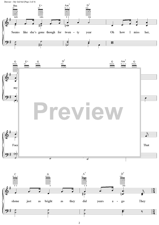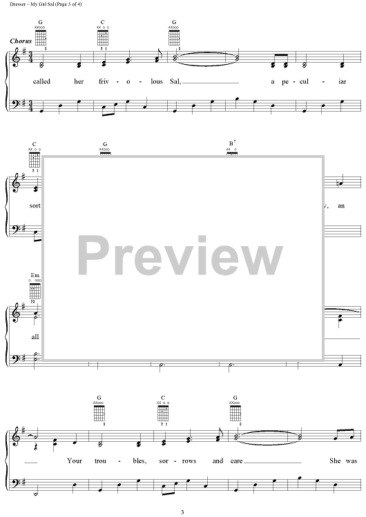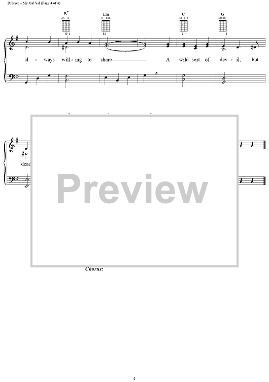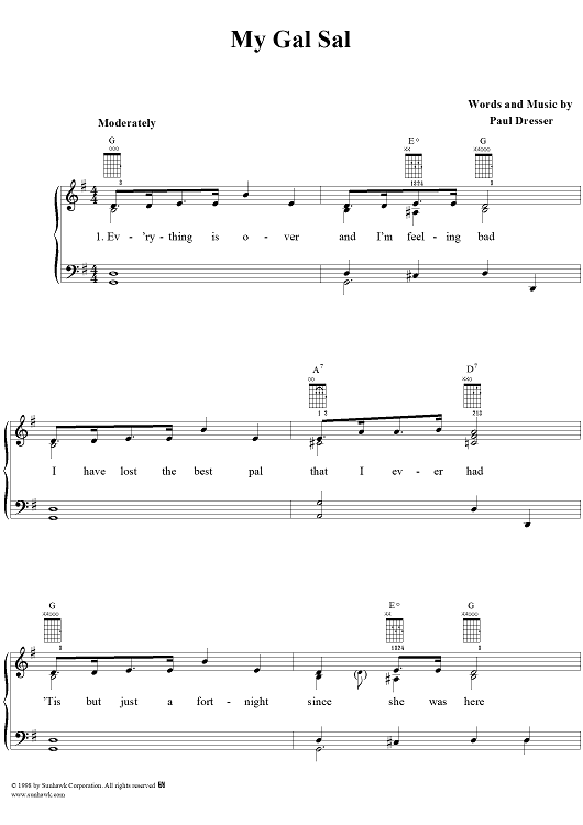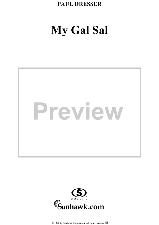 Digital Sheet Music for My Gal Sal by Paul Dresser scored for Piano/Vocal/Chords; id:118174