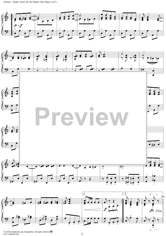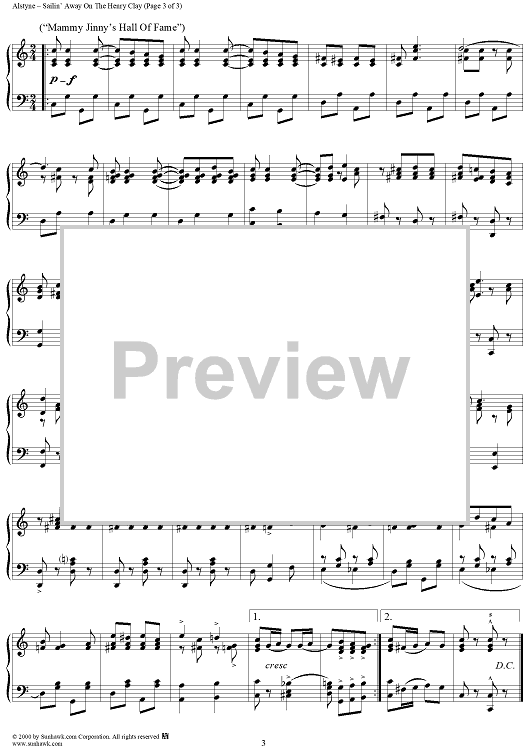 Digital Sheet Music for Sailin' Away on the Henry Clay / Mammy Jinny's Hall of Fame (Medley One Step) by Egbert Van Alstyne, Harry Tierney scored for Piano Solo; id:195500