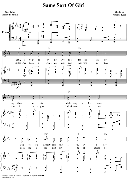 Digital Sheet Music for Same Sort of Girl by Jerome Kern, Harry B. Smith scored for Piano/Vocal/Chords; id:111432