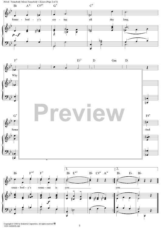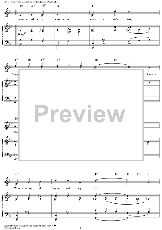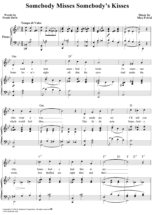 Digital Sheet Music for Somebody Misses Somebody's Kisses by Max Prival, Frank Davis scored for Piano/Vocal; id:118276