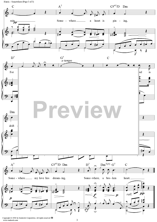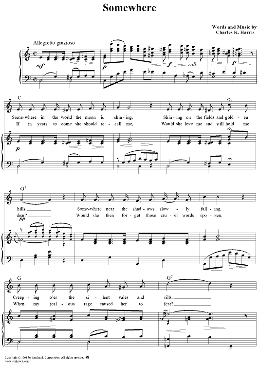 Digital Sheet Music for Somewhere by Charles K. Harris scored for Piano/Vocal; id:109335