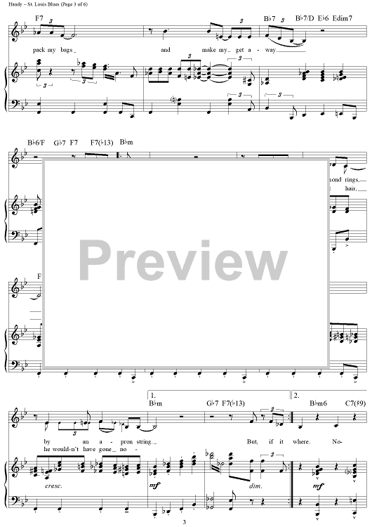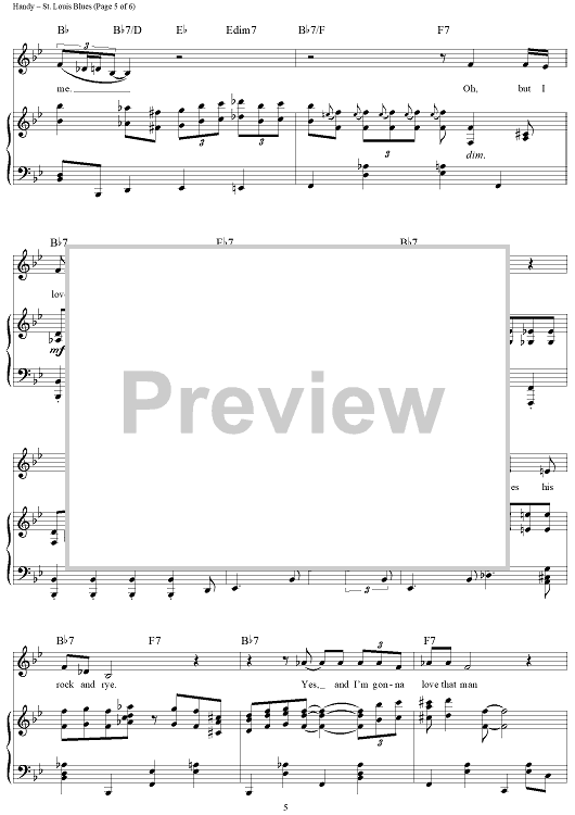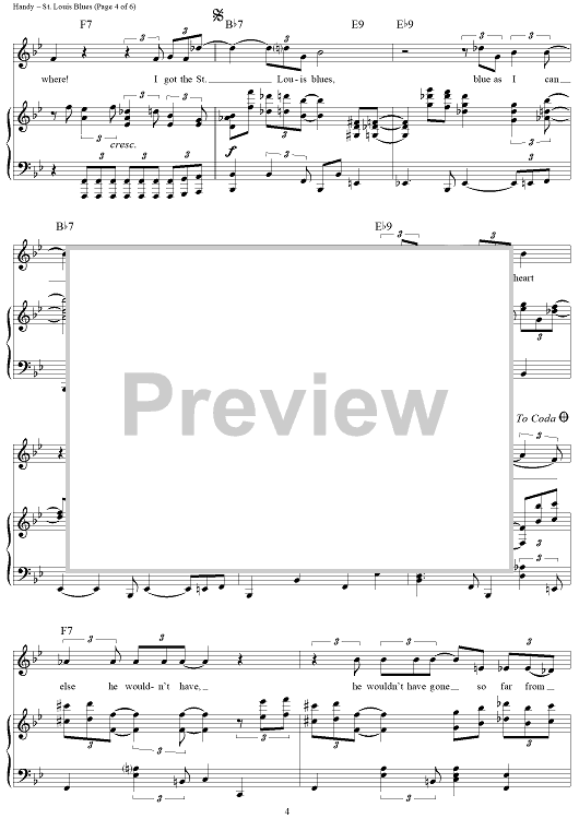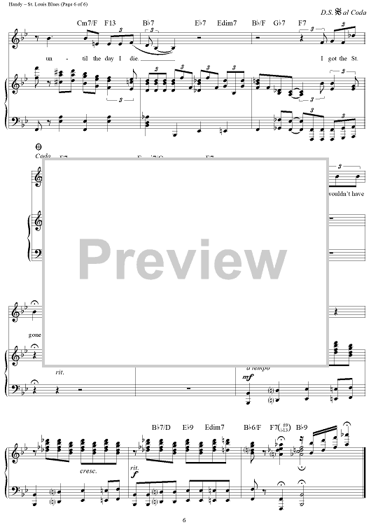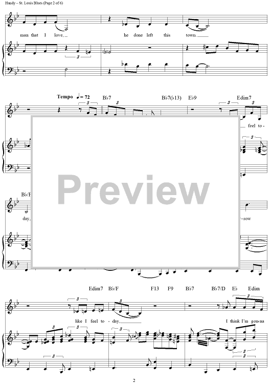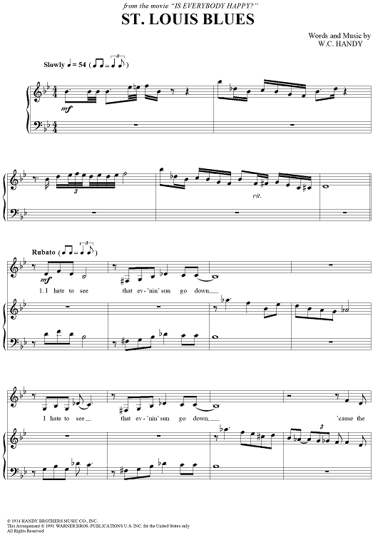 Digital Sheet Music for St. Louis Blues by Bessie Smith, Louis Armstrong, Benny Goodman, W. C. Handy scored for Piano/Vocal/Chords; id:116544