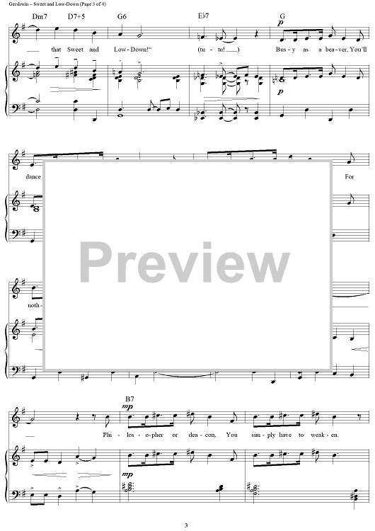 Digital Sheet Music for Sweet and Low-Down by George Gershwin, Ira Gershwin scored for Piano/Vocal/Chords; id:112837