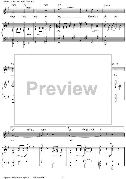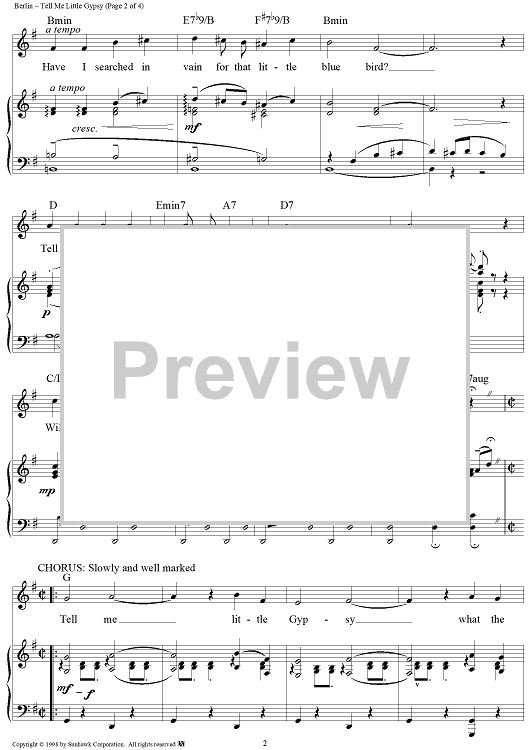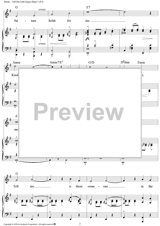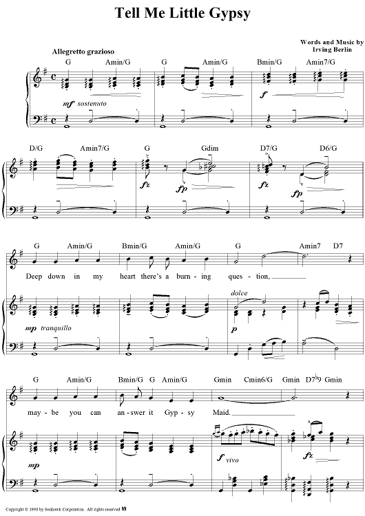 Digital Sheet Music for Tell Me Little Gypsy by Irving Berlin scored for Piano/Vocal/Chords; id:95594