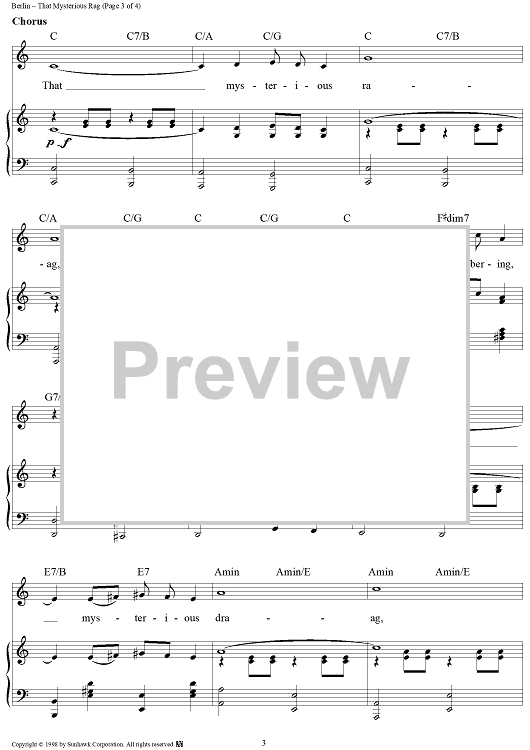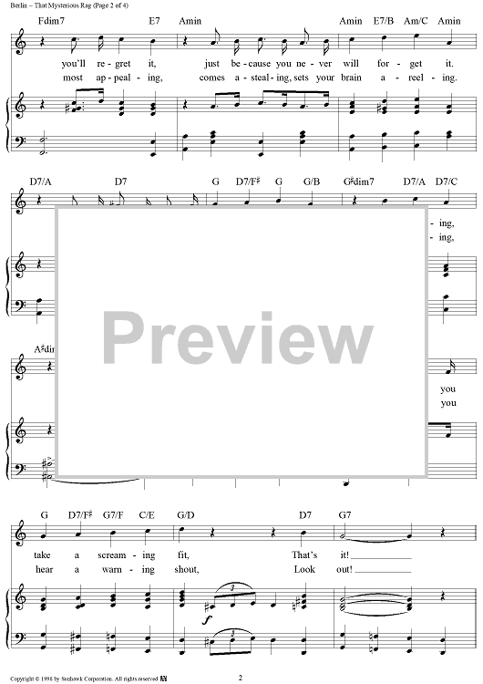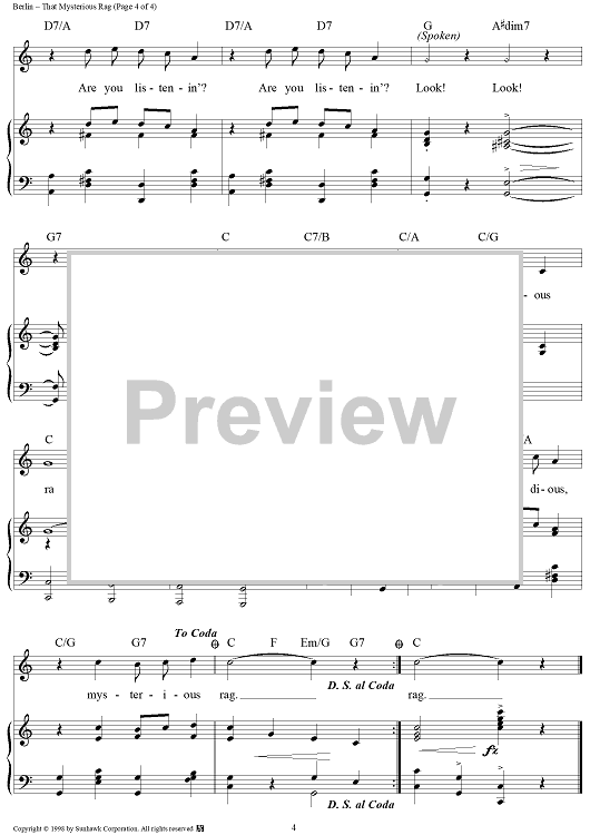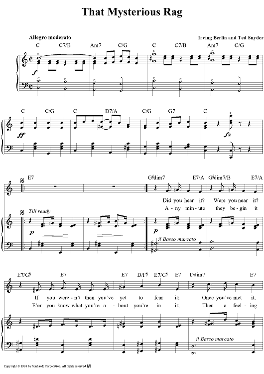 Digital Sheet Music for That Mysterious Rag by Irving Berlin, Ted Snyder scored for Piano/Vocal/Chords; id:95583