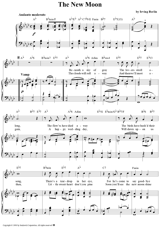 Digital Sheet Music for The New Moon by Irving Berlin scored for Piano/Vocal/Chords; id:95481