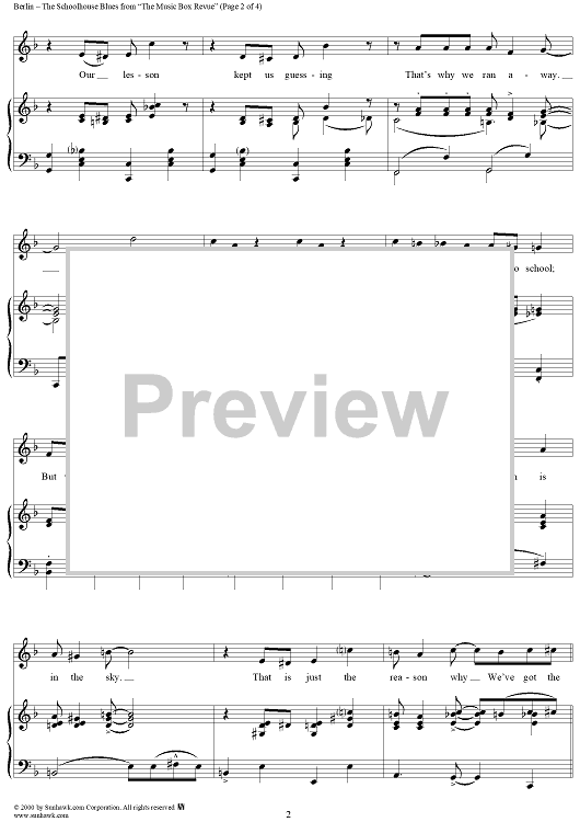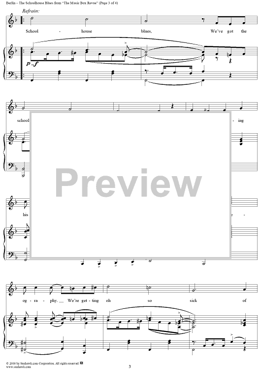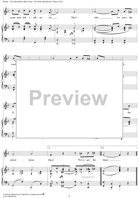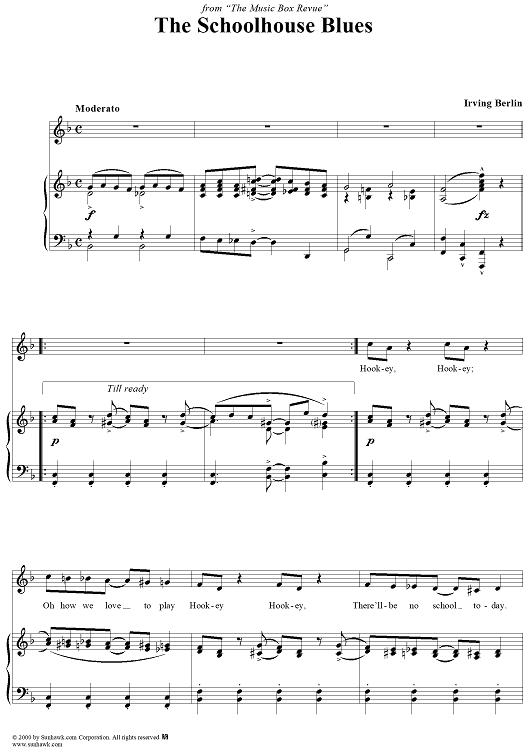Digital Sheet Music for The Schoolhouse Blues by Irving Berlin scored for Piano/Vocal; id:241099