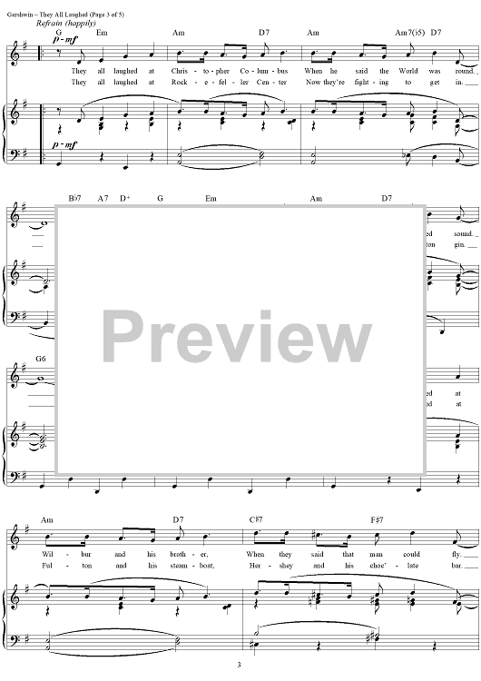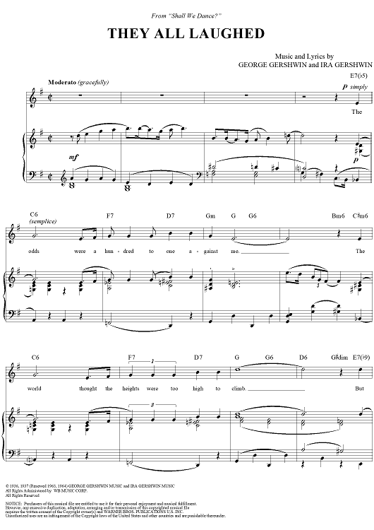 Digital Sheet Music for They All Laughed by George Gershwin, Ira Gershwin, Ginger Rogers scored for Piano/Vocal/Chords; id:110881