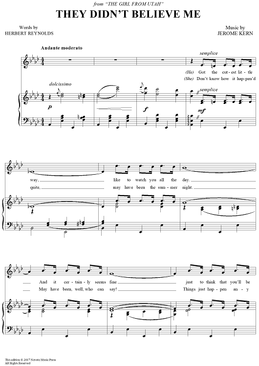 Digital Sheet Music for They Didn't Believe Me by Jerome Kern, Herbert Reynolds scored for Piano/Vocal; id:174790