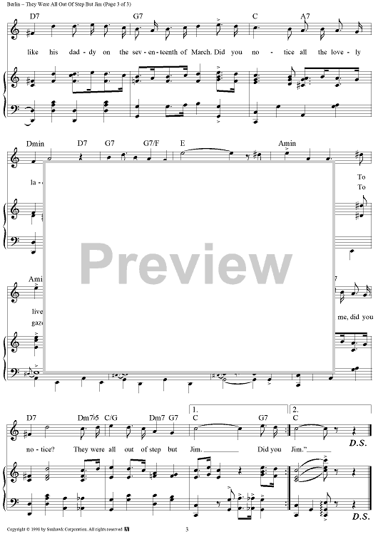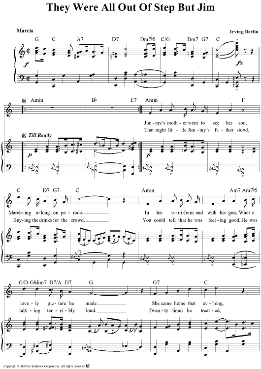 Digital Sheet Music for They Were All Out Of Step But Jim by Irving Berlin scored for Piano/Vocal/Chords; id:95483