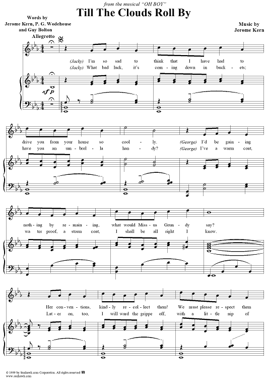 Digital Sheet Music for Till the Clouds Roll By by Jerome Kern, P.G. Wodehouse, Guy Bolton scored for Piano/Vocal; id:118410