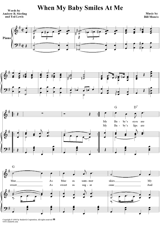 Digital Sheet Music for When My Baby Smiles at Me by Andrew B. Sterling, Bill Munro, Ted Lewis scored for Piano/Vocal/Chords; id:118266
