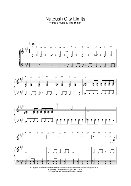 Digital Sheet Music for Nutbush City Limits by Tina Turner, Ike & Tina Turner scored for Piano/Vocal/Chords; id:386440