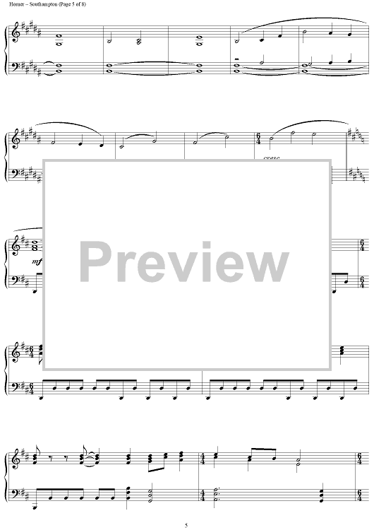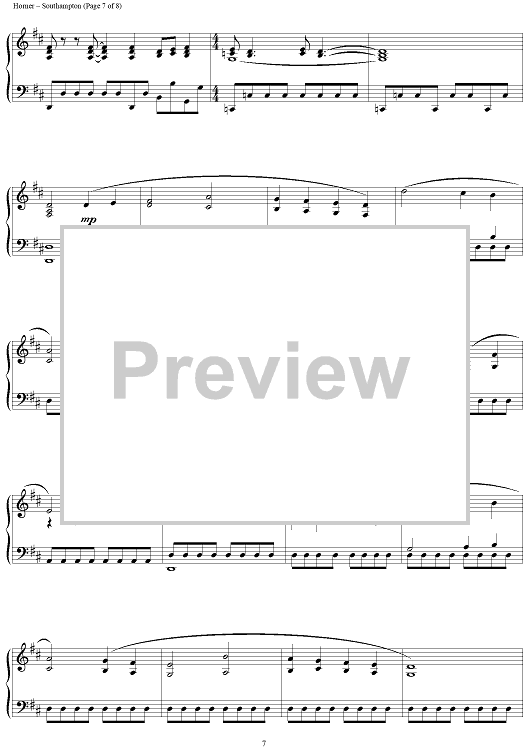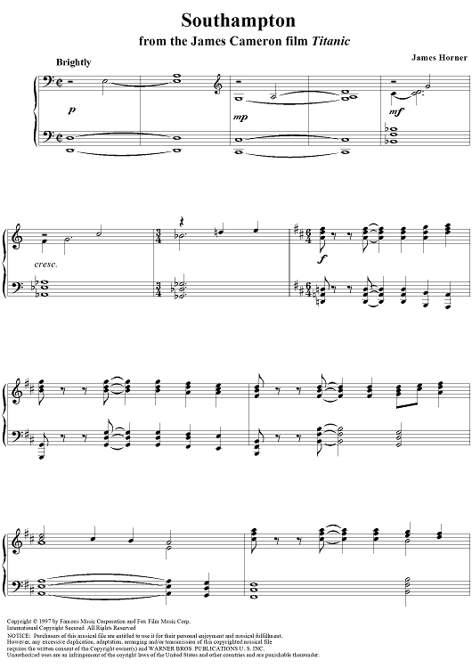 Digital Sheet Music for Southampton by James Horner scored for Piano Solo; id:95780