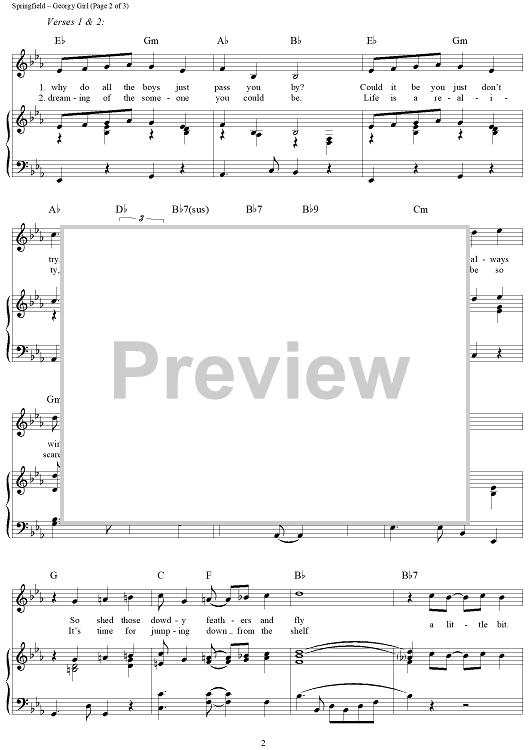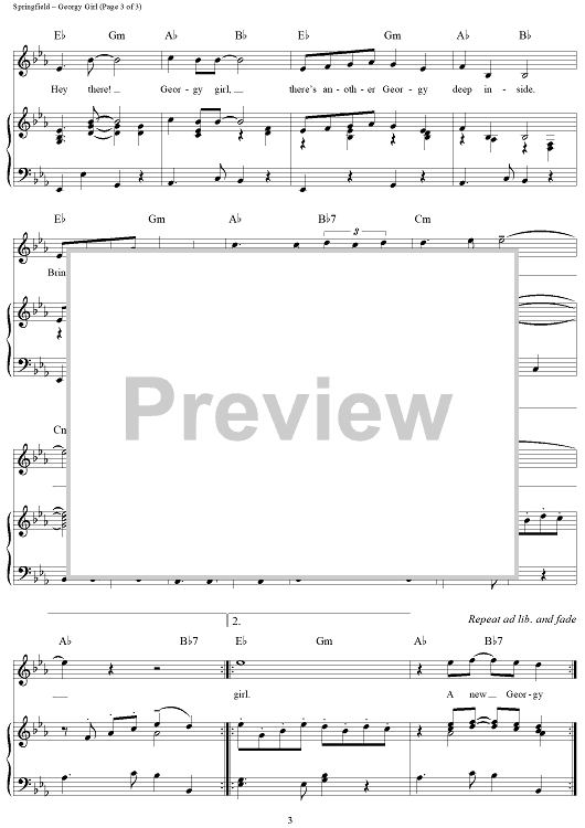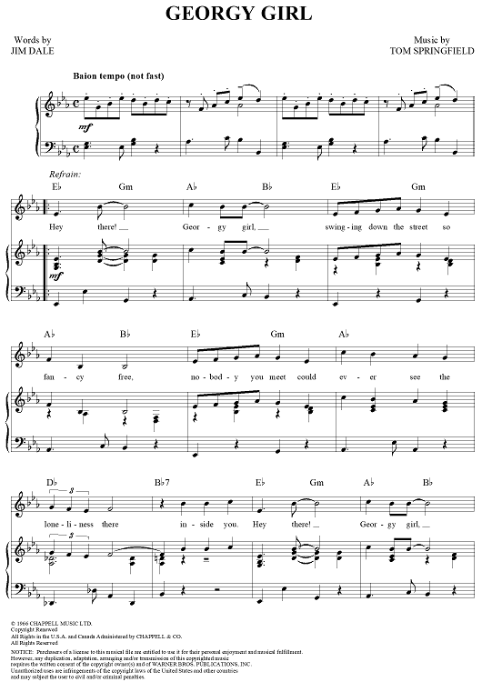 Digital Sheet Music for Georgy Girl by The Seekers, Tom Springfield scored for Piano/Vocal/Chords; id:287065