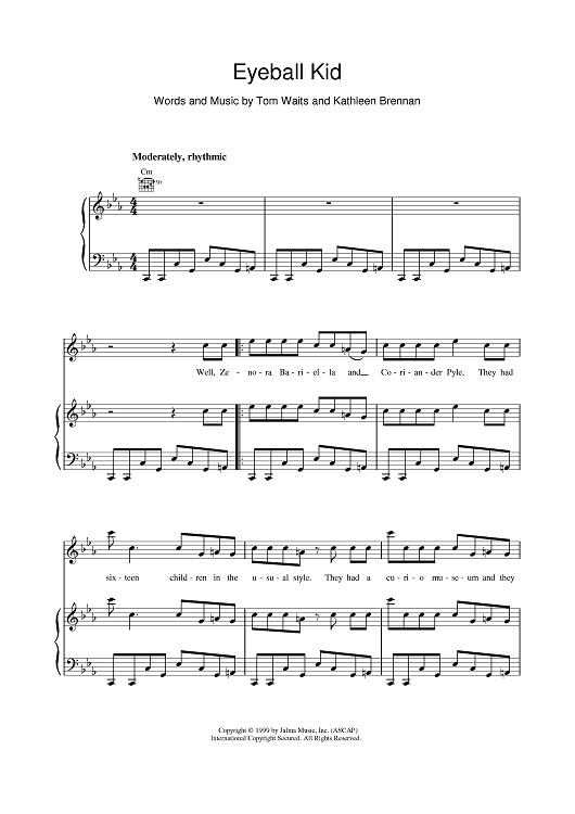 Digital Sheet Music for Eyeball Kid by Tom Waits scored for Piano/Vocal/Chords; id:377386