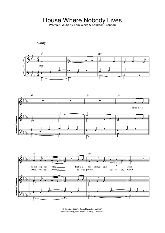 "House Where Nobody Lives" Sheet Music by Tom Waits