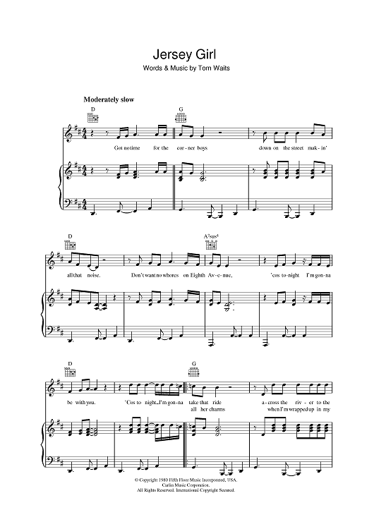 Digital Sheet Music for Jersey Girl by Tom Waits scored for Piano/Vocal/Chords; id:401568