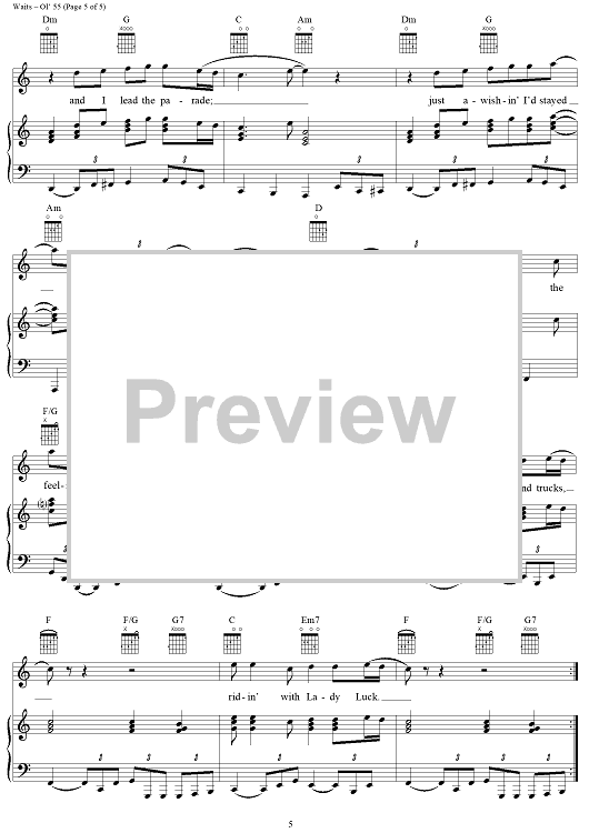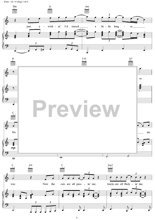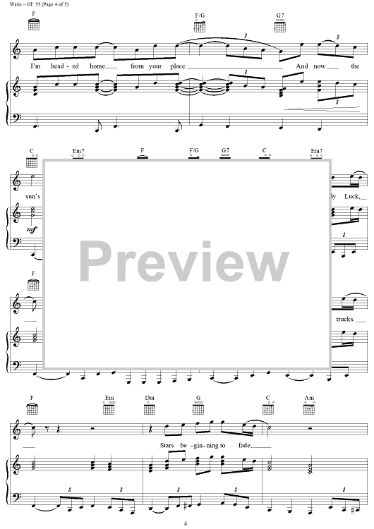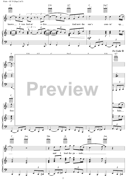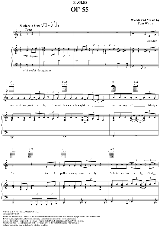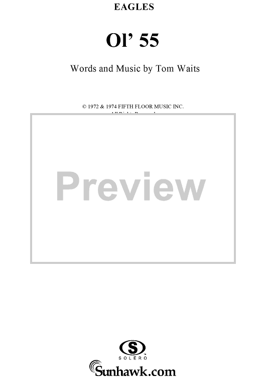 Digital Sheet Music for Ol' 55 by Tom Waits, Eagles scored for Piano/Vocal/Chords; id:112255