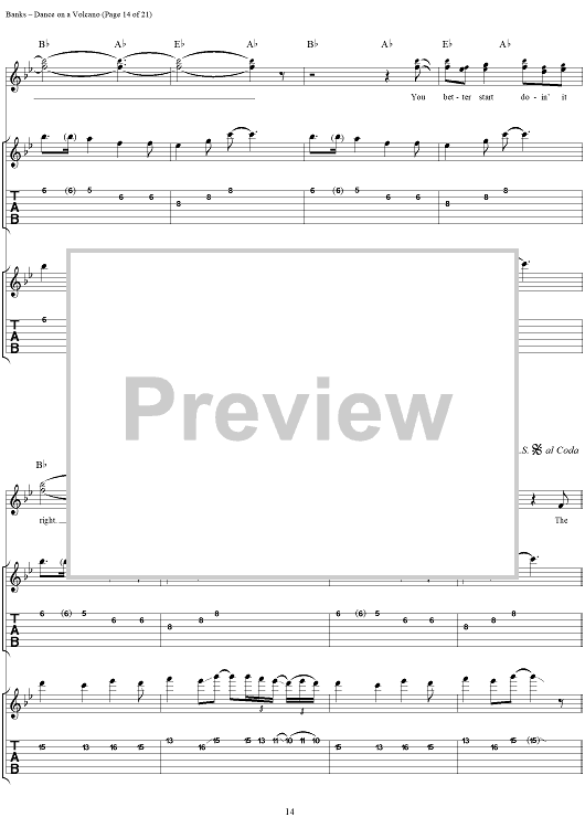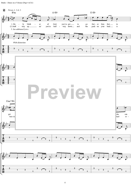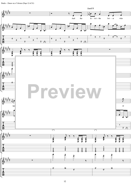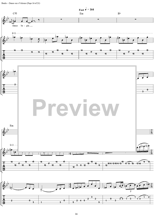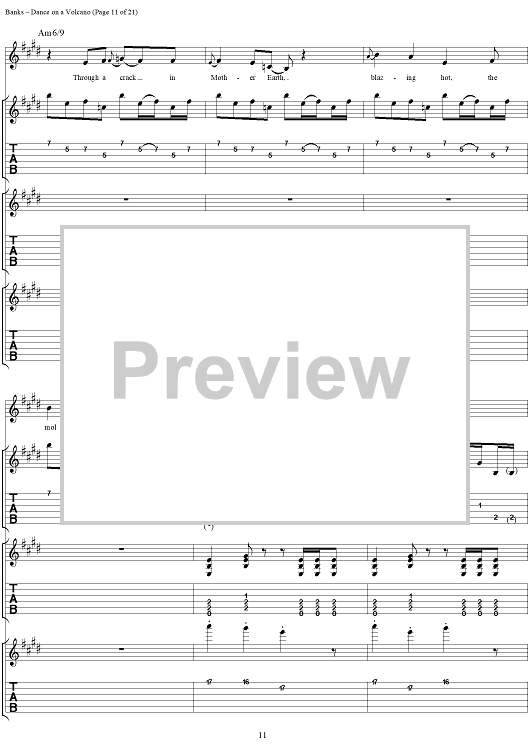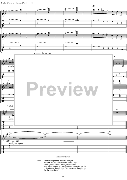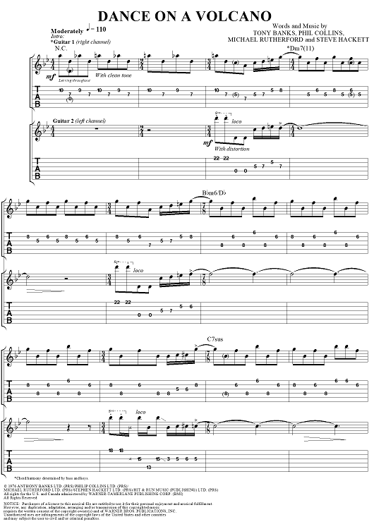 Digital Sheet Music for Dance on a Volcano by Genesis, Mike Rutherford, Steve Hackett, Tony Banks, Phil Collins scored for Guitar Tab/Vocal; id:113845