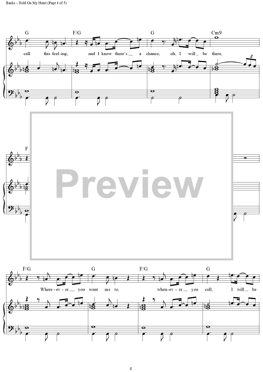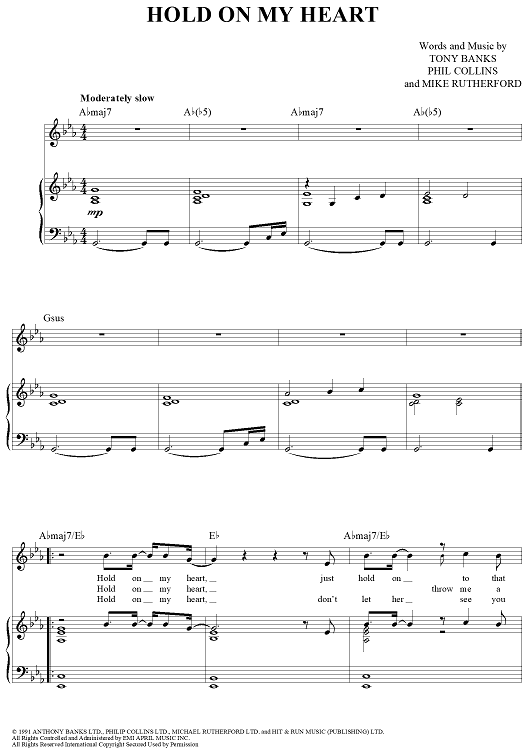 Digital Sheet Music for Hold on My Heart by Genesis, Mike Rutherford, Tony Banks, Phil Collins scored for Piano/Vocal/Chords; id:411447