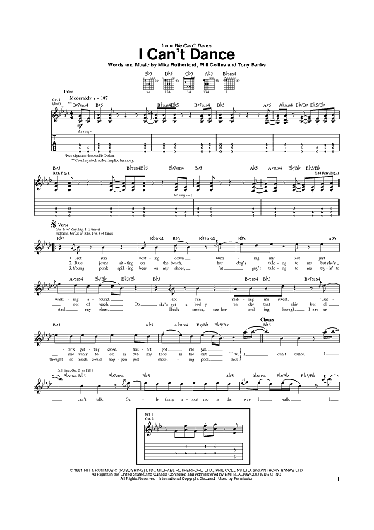 Digital Sheet Music for I Can't Dance by Genesis, Mike Rutherford, Tony Banks, Phil Collins scored for Guitar Tab; id:370146