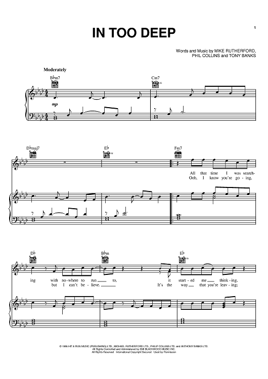 Digital Sheet Music for In Too Deep by Genesis, Mike Rutherford, Tony Banks, Phil Collins scored for Piano/Vocal/Chords; id:380412
