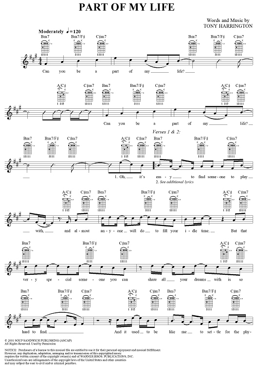 Digital Sheet Music for Part of My Life by India.Arie, Tony Harrington scored for Easy Guitar/Vocal; id:287887