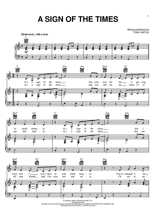 Digital Sheet Music for A Sign Of The Times by Tony Hatch, Petula Clark scored for Piano/Vocal/Chords; id:380513