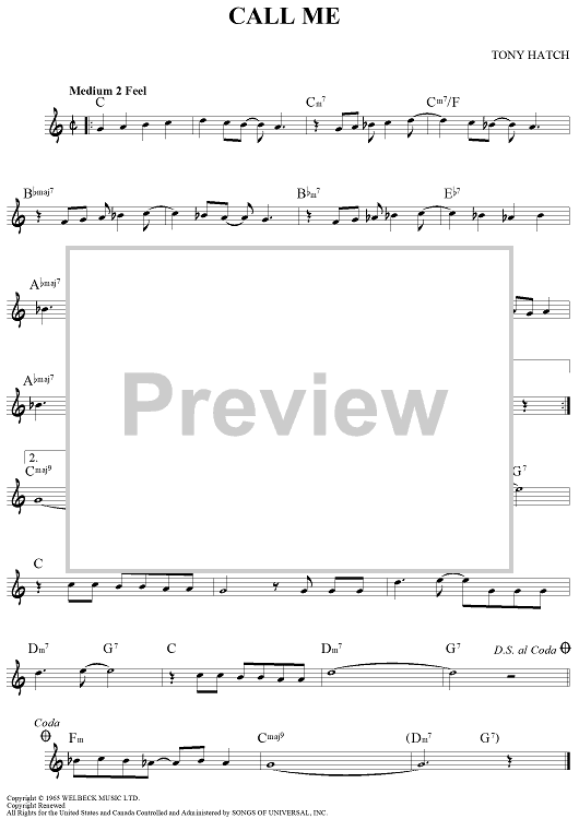 Digital Sheet Music for Call Me by Tony Hatch scored for Lead Sheet; id:445170