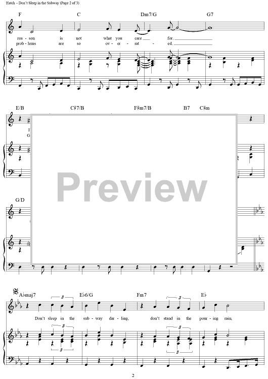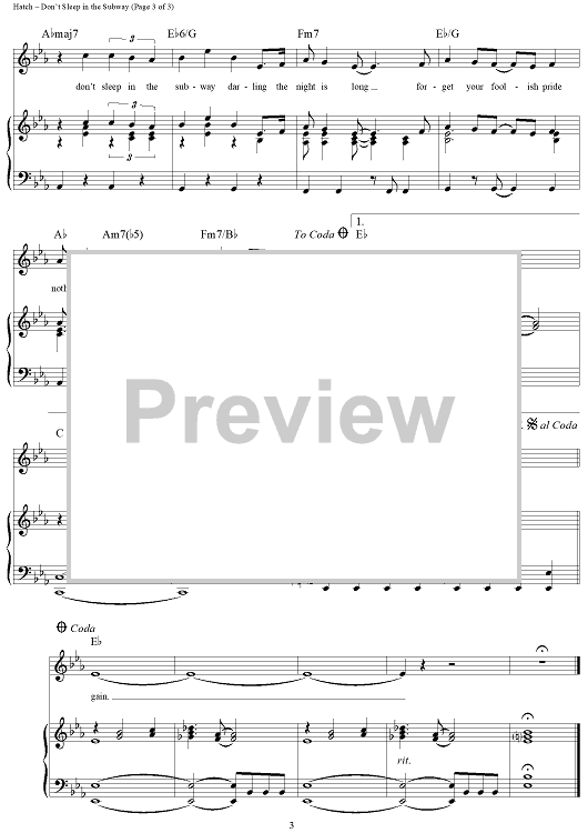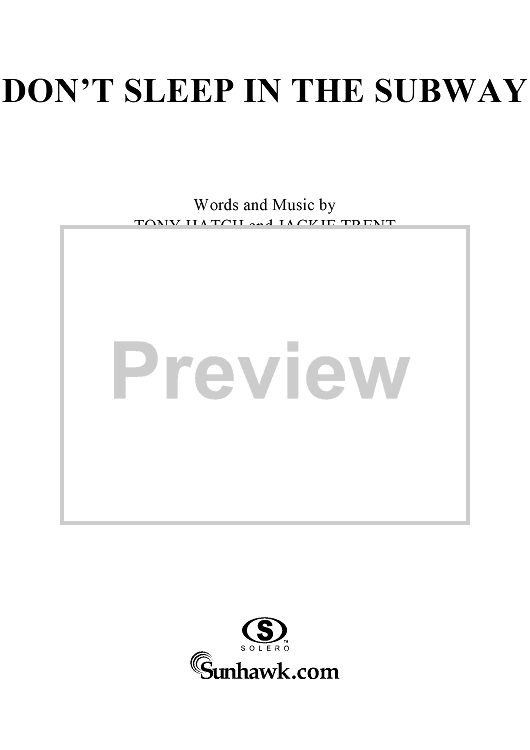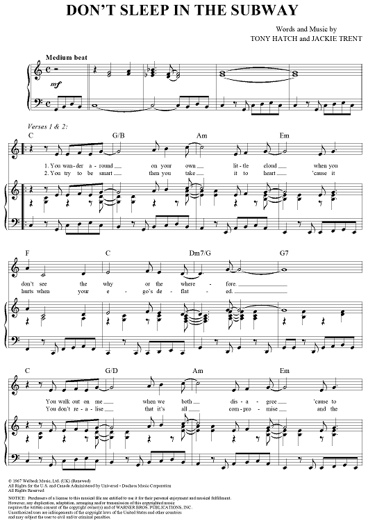 Digital Sheet Music for Don't Sleep in the Subway by Tony Hatch, Jackie Trent scored for Piano/Vocal/Chords; id:287933