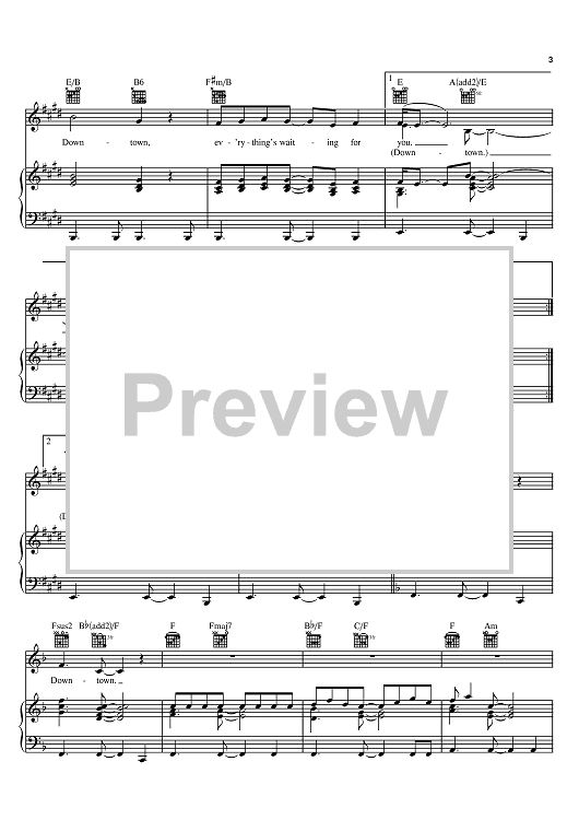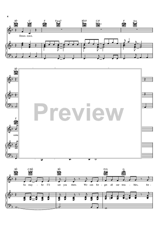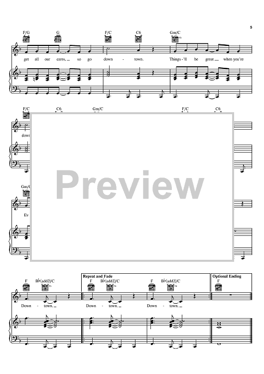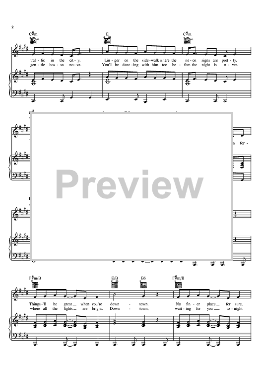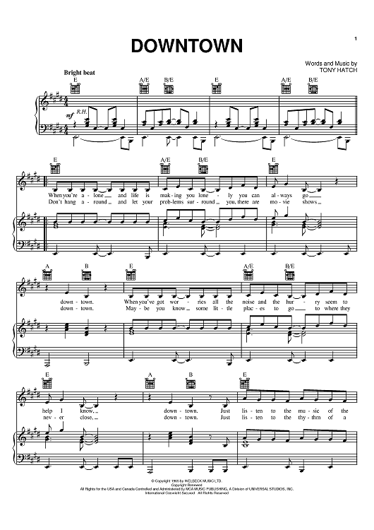 Digital Sheet Music for Downtown by Tony Hatch, Petula Clark scored for Piano/Vocal/Chords; id:392804