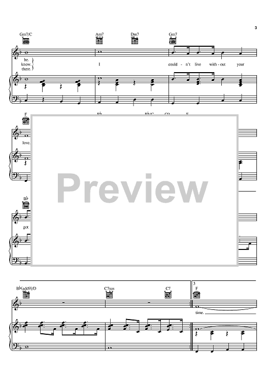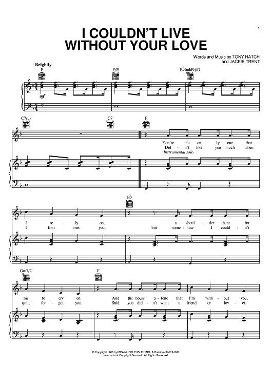 Digital Sheet Music for I Couldn't Live Without Your Love by Tony Hatch, Jackie Trent, Petula Clark scored for Piano/Vocal/Chords; id:392527