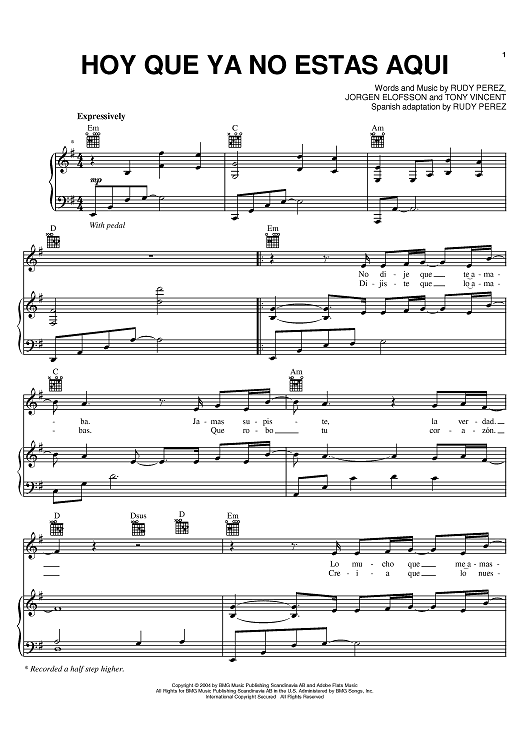 Digital Sheet Music for Hoy Que Ya No Estas Aqui by Jörgen Elofsson, Rudy Perez, Il Divo, Tony Vincent scored for Piano/Vocal/Chords; id:387133