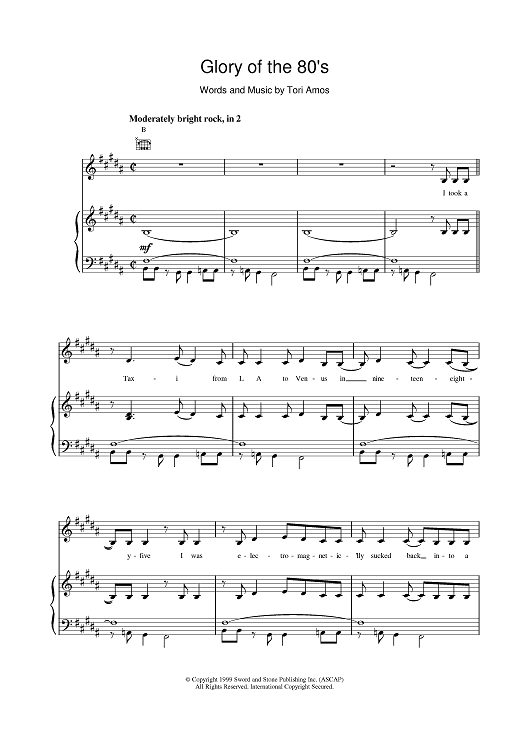 Digital Sheet Music for Glory of the 80s by Tori Amos scored for Piano/Vocal/Chords; id:379971