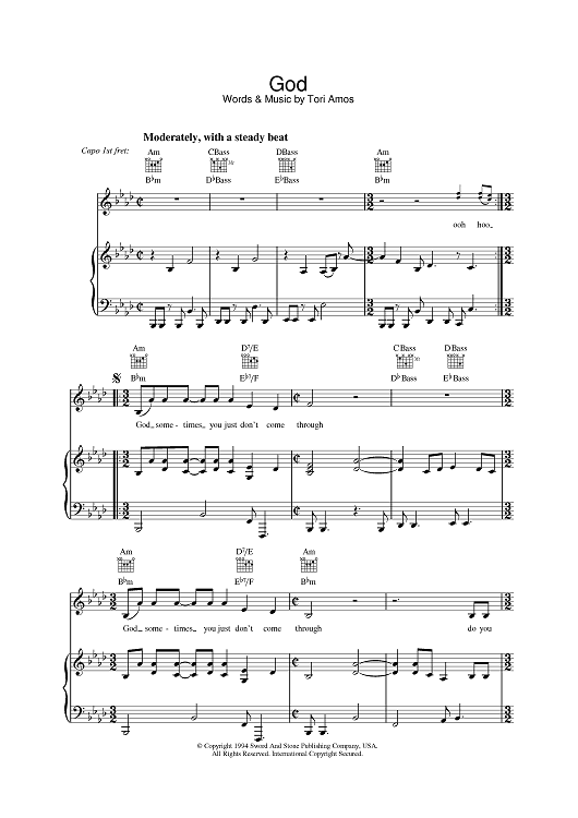Digital Sheet Music for God by Tori Amos scored for Piano/Vocal/Chords; id:392389