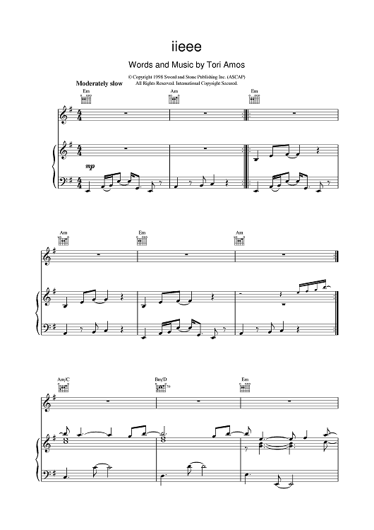 Digital Sheet Music for Iiieee by Tori Amos scored for Piano/Vocal/Chords; id:379924