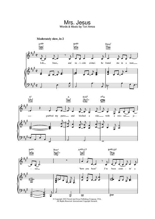 Digital Sheet Music for Mrs. Jesus by Tori Amos scored for Piano/Vocal/Chords; id:392149