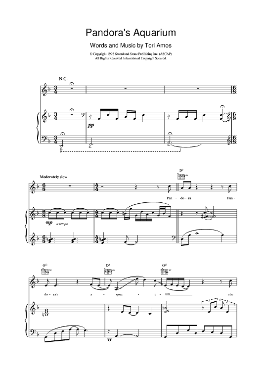 Digital Sheet Music for Pandora's Aquarium by Tori Amos scored for Piano/Vocal/Chords; id:379926