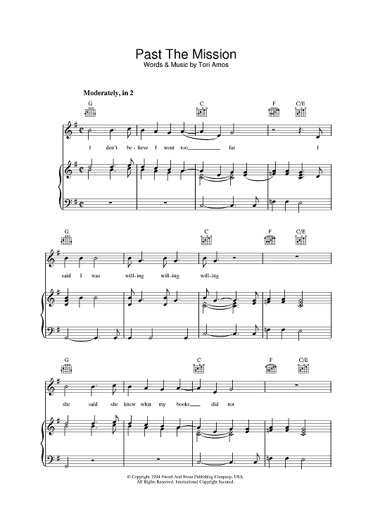 Digital Sheet Music for Past The Mission by Tori Amos scored for Piano/Vocal/Chords; id:390931