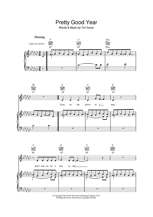 Digital Sheet Music for Pretty Good Year by Tori Amos scored for Piano/Vocal/Chords; id:392107