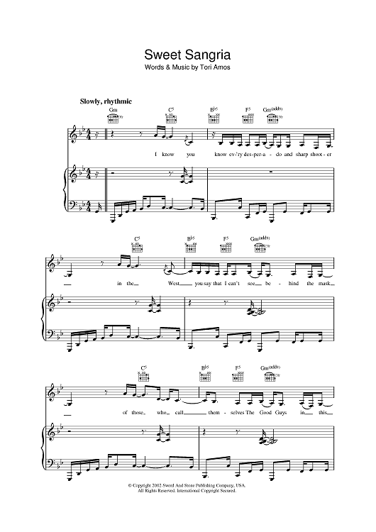 Digital Sheet Music for Sweet Sangria by Tori Amos scored for Piano/Vocal/Chords; id:392146