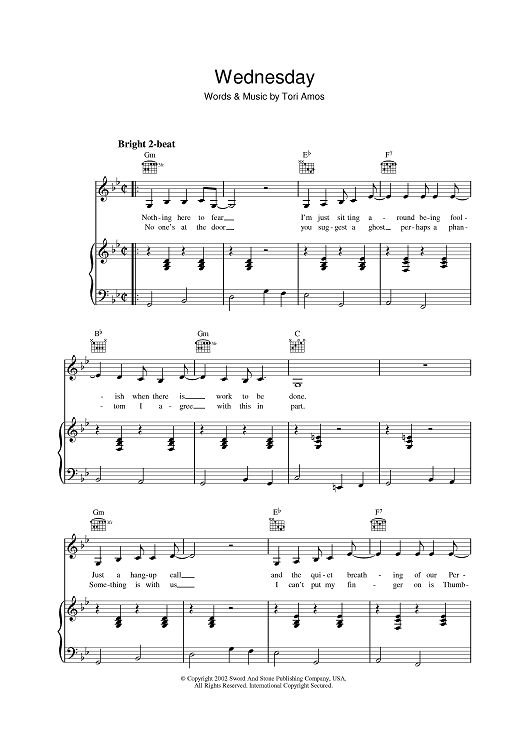 Digital Sheet Music for Wednesday by Tori Amos scored for Piano/Vocal/Chords; id:392142