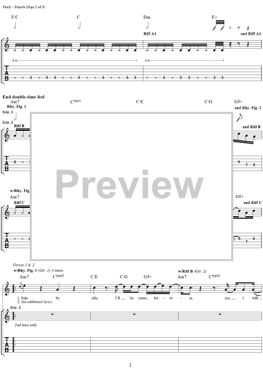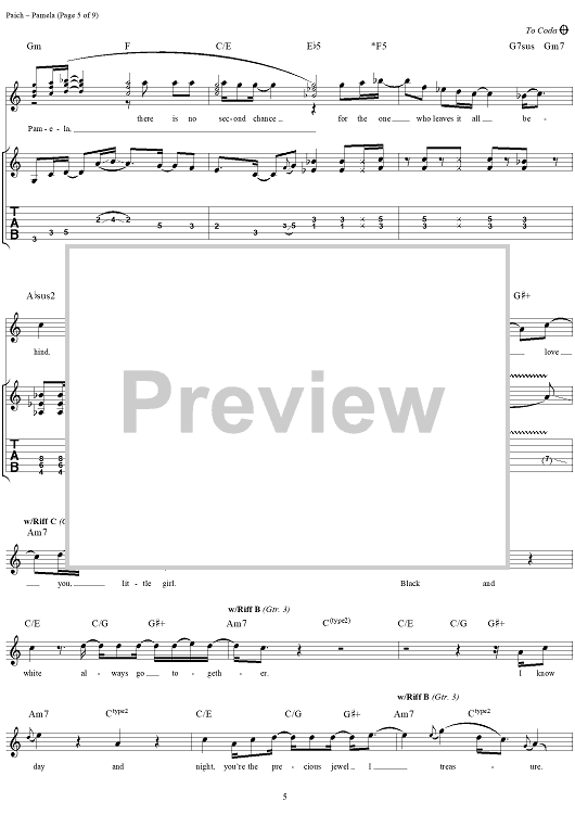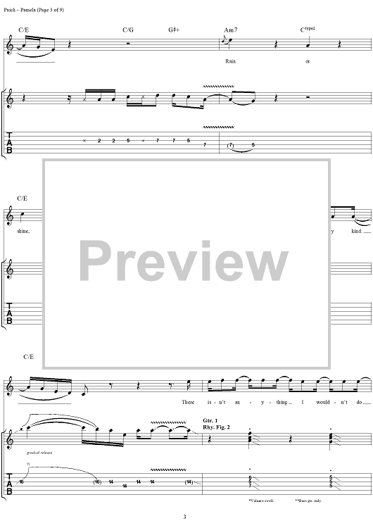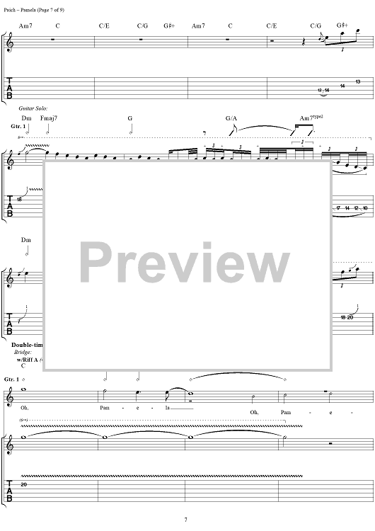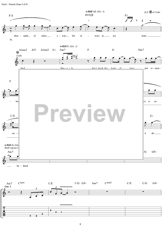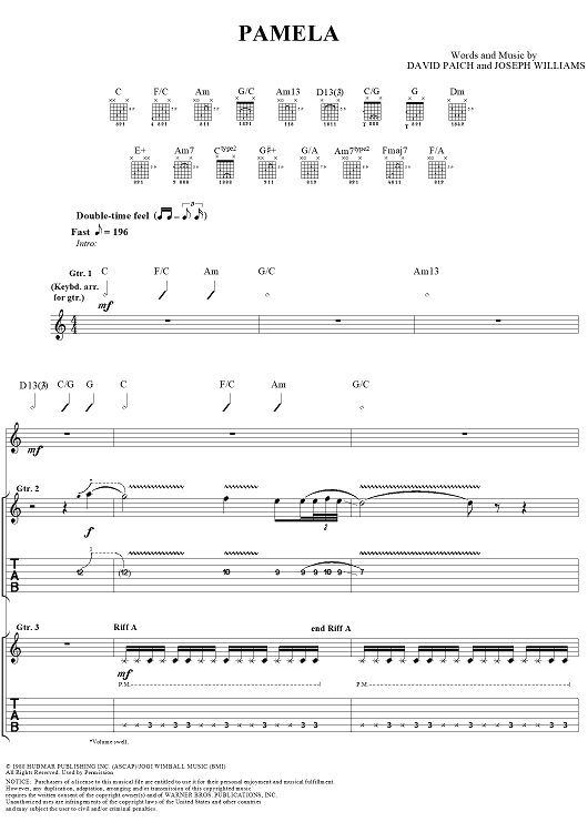 Digital Sheet Music for Pamela by Toto, David Paich, Joseph Williams scored for Guitar Tab/Vocal; id:189614