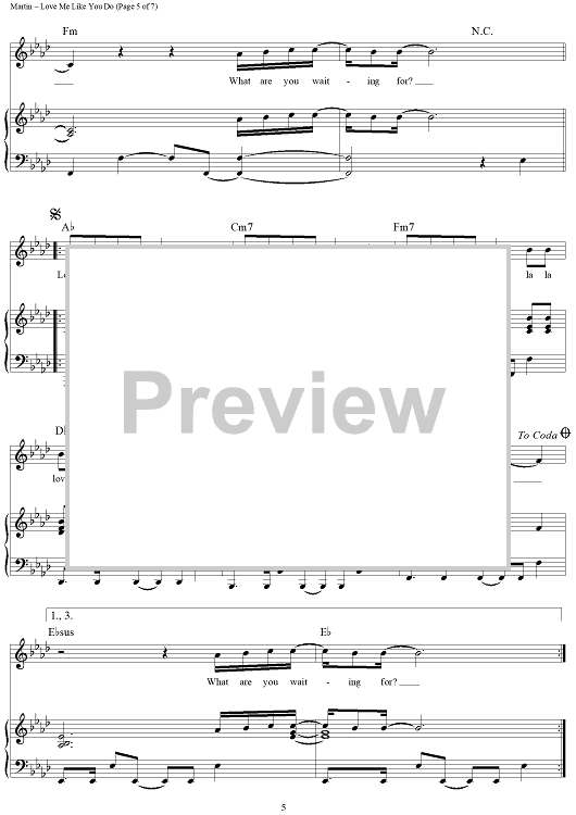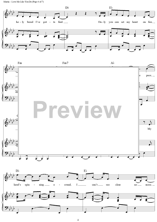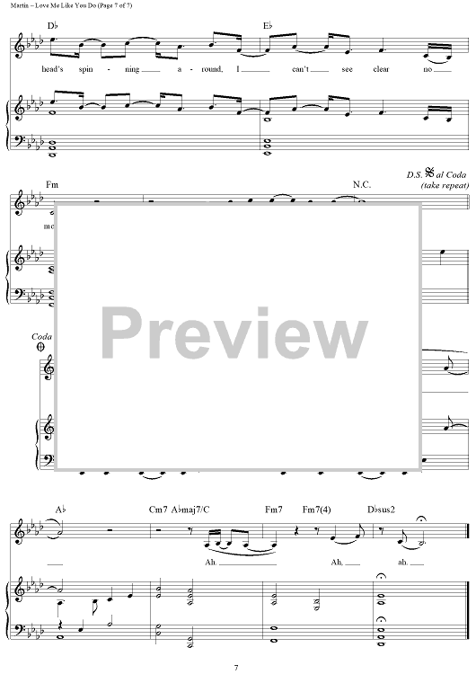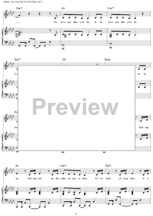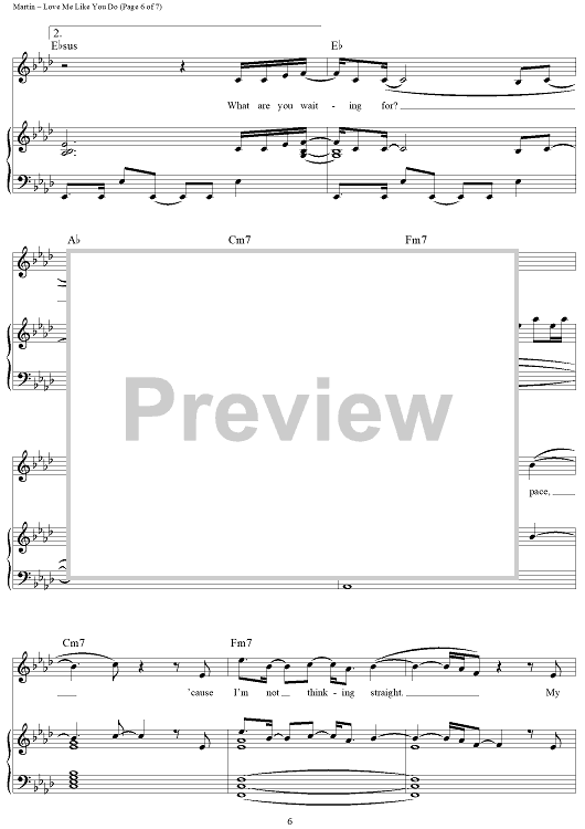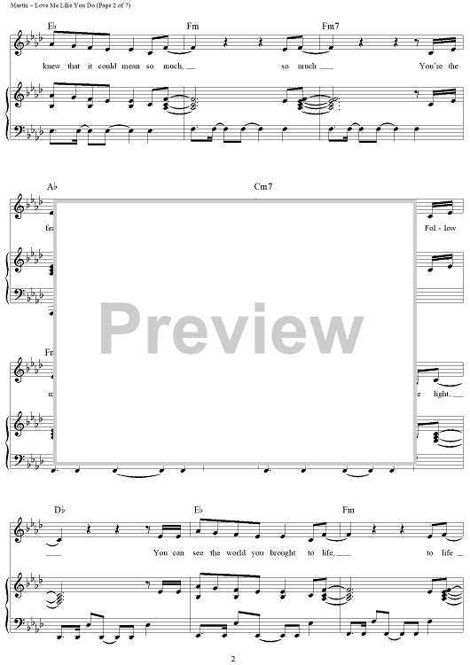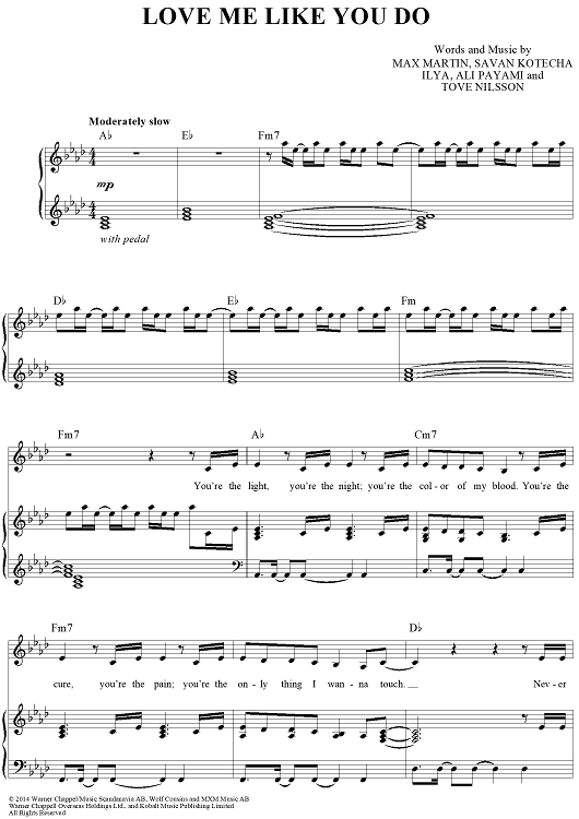 Digital Sheet Music for Love Me Like You Do by Max Martin, Savan Kotecha, Ellie Goulding, Ali Payami, Ilya, Tove Nilsson scored for Piano/Vocal/Chords; id:448094