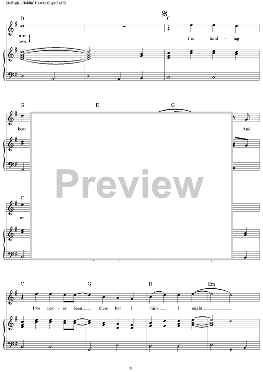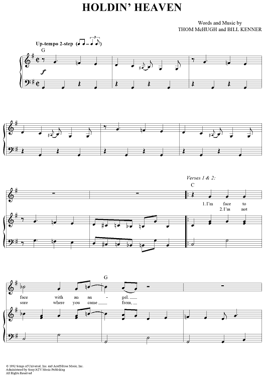 Digital Sheet Music for Holdin' Heaven by Tracy Byrd, Thom McHugh, Bill Kenner scored for Piano/Vocal/Chords; id:235492