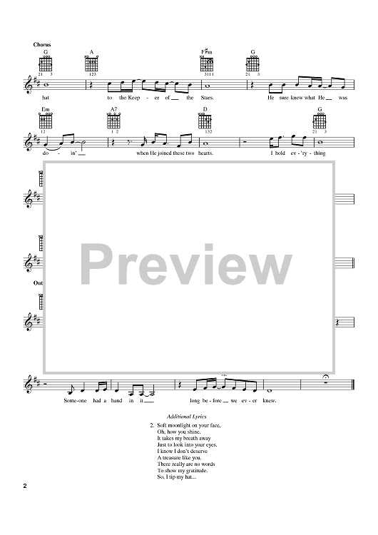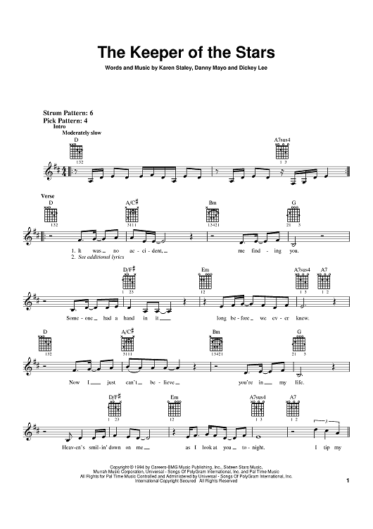 Digital Sheet Music for The Keeper Of The Stars by Tracy Byrd, Dickey Lee, Karen Staley, Danny Mayo scored for Lead Sheet with Guitar Grids; id:383077